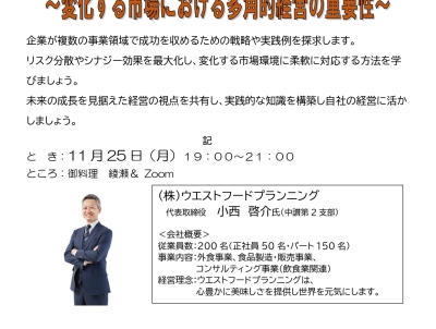 2024/11/25 (月) 19:00~ 多角的経営の未来:成功事例と戦略~変化する市場における多角的経営の重要性~
