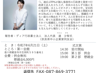 当支部では、月例会などでの学びを自社で実践し、経営指針を軸とした企業経営、社員がイキイキと働ける職場環境、地域にとってなくてはならない企業づくりを目指しています。一緒に学び成長しあえる仲間、社員と共に地域で輝く企業、多様性を認めた企業を増やすことが、香川の地域を発展させ、元気な地域づくりに貢献すると思っています。