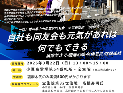 2026/03/22 (日) 13:00~ 自社も同友会も元気があれば何でもできる~護摩焚きで・開運厄除・無病息災・諸願成就~