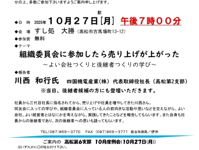 2025/10/27 (月) 19:00~ 組織委員会に参加したら売り上げが上がった 〜よい会社つくりと後継者つくりの学び〜