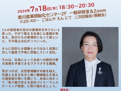 2024/07/18 (木) 18:30-居場所は自分達で創る‼~ひとりじゃない「皆で喜びの会社づくり」で未来が見える~
