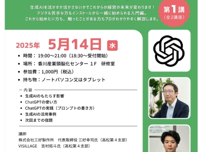 2025/05/14 (水) 19:00~ AI勉強会 ChatGPT活用セミナー 初めてでも安心ここから1歩を踏み出そう