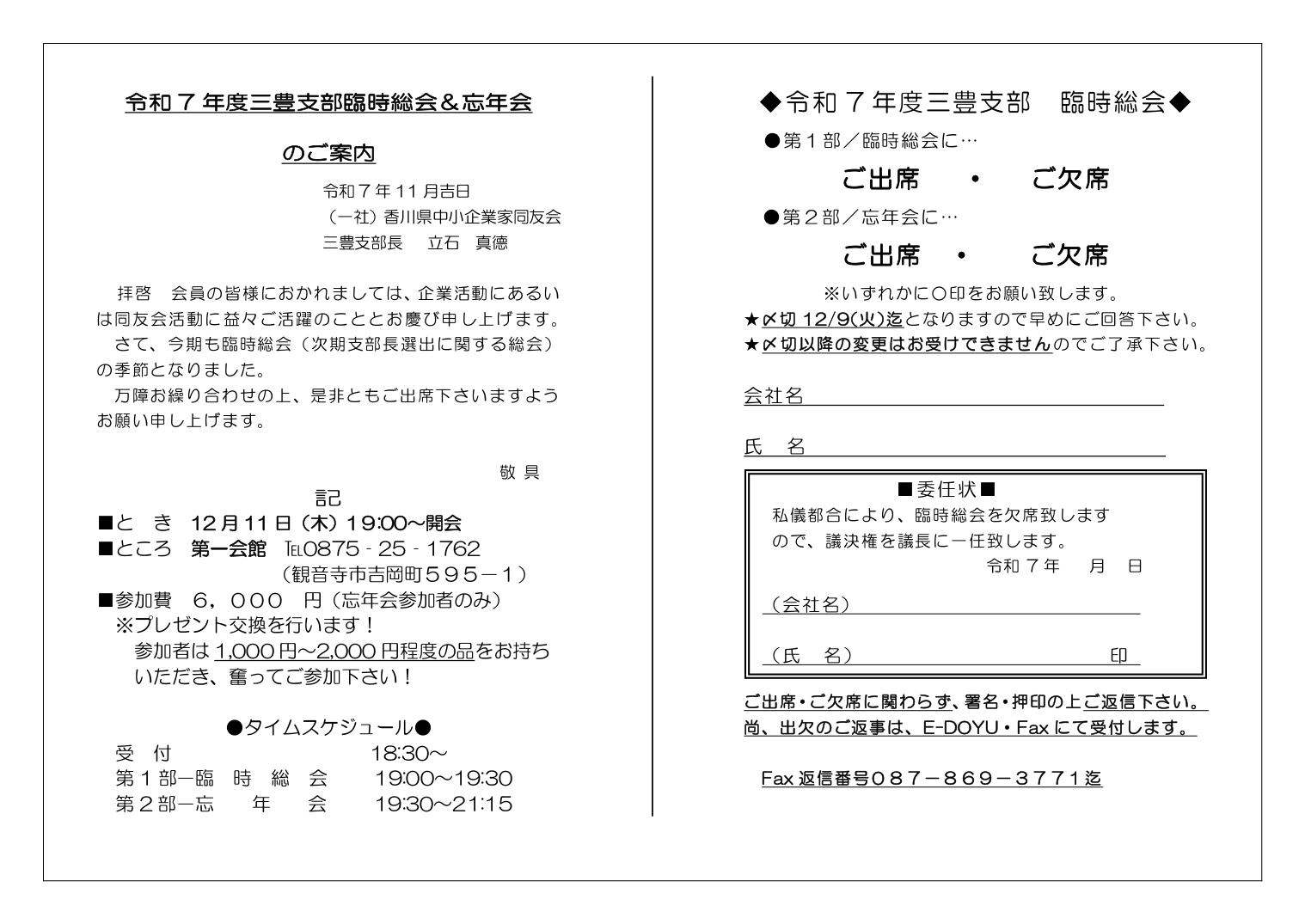 令和7年度三豊支部臨時総会&忘年会のご案内