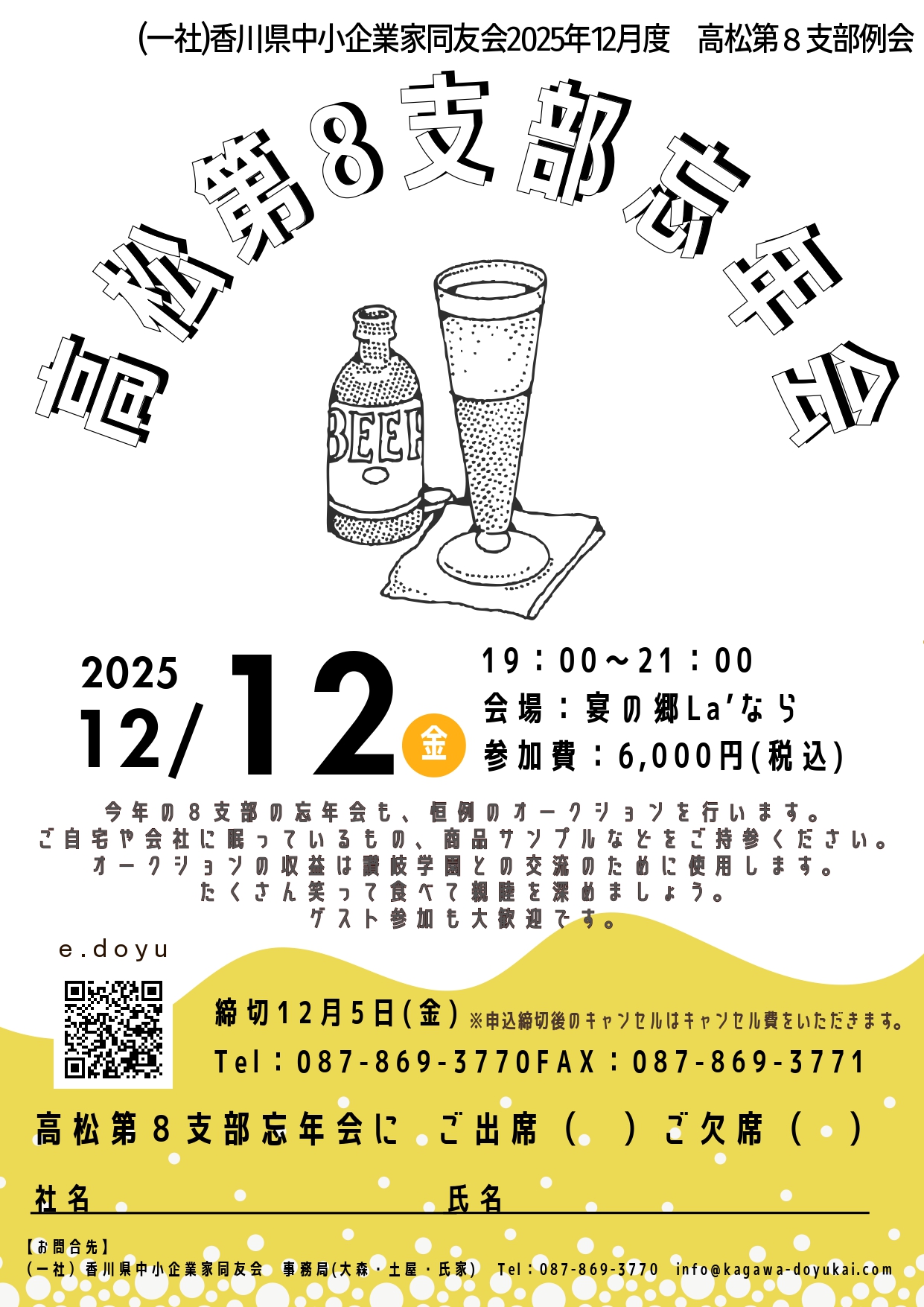 2025/12/12 (金) 19:00~ 12月度高松第8支部忘年会