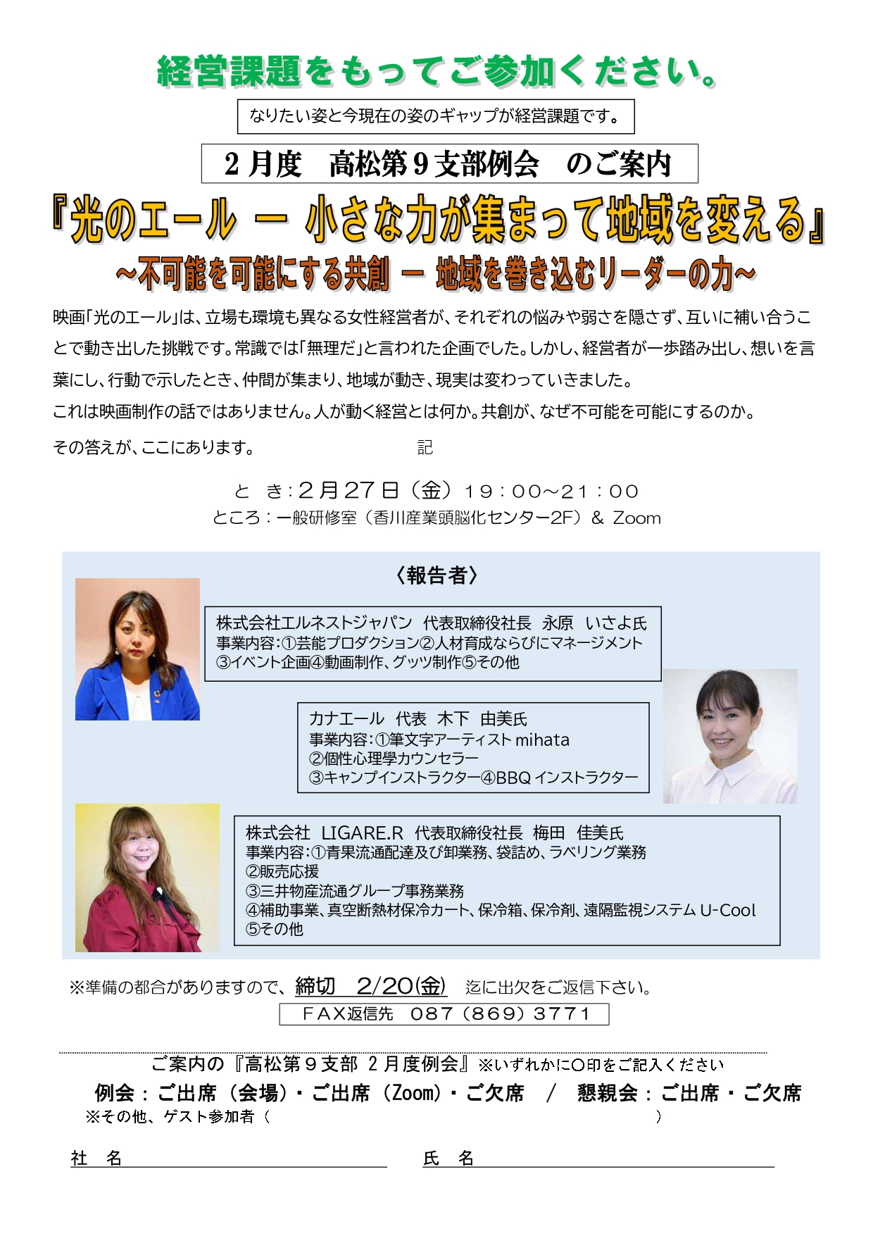 2026/02/27 (金) 19:00~ 光のエール ― 小さな力が集まって地域を変える ~不可能を可能にする共創 ― 地域を巻き込むリーダーの力~