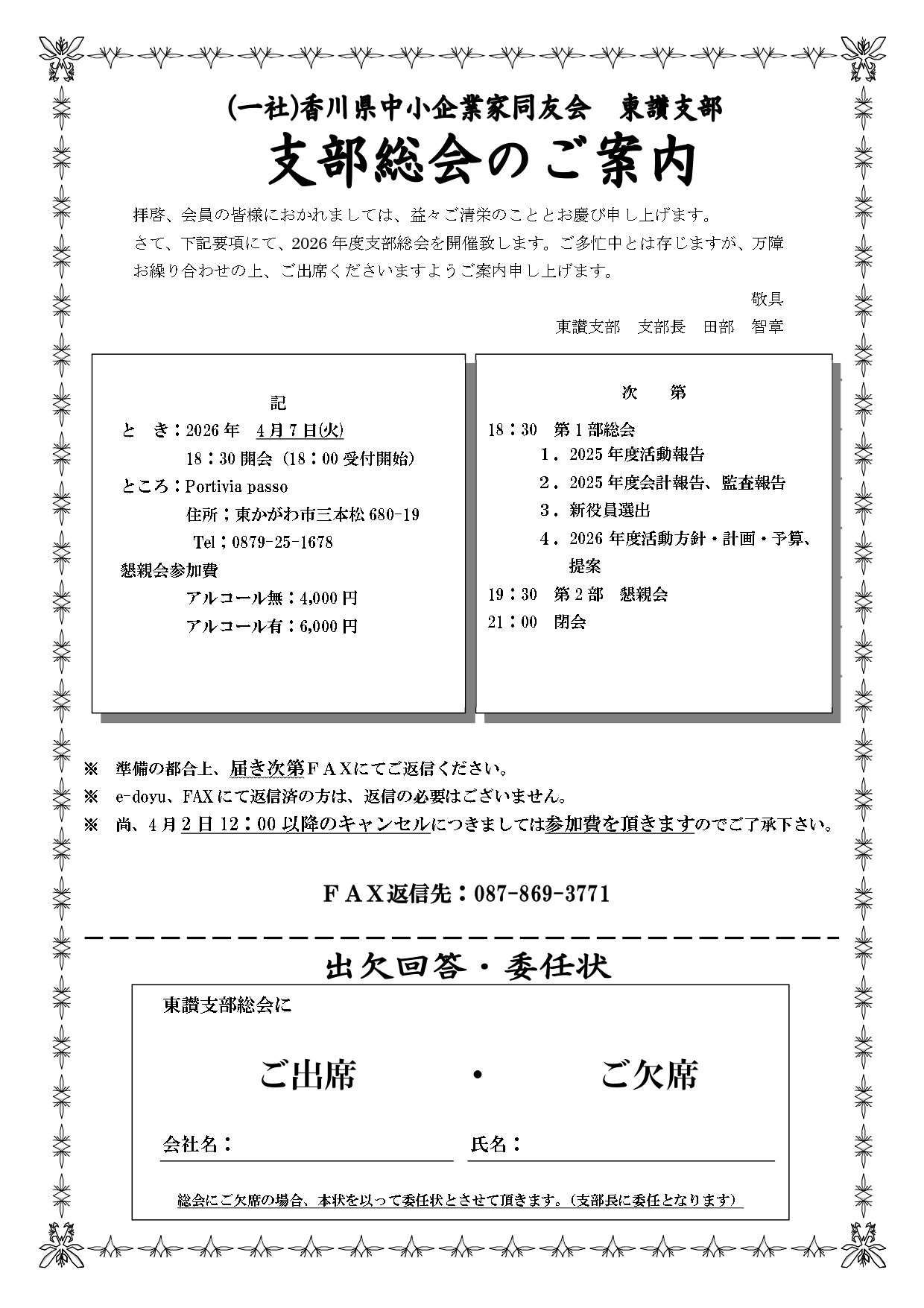 2026/04/07 (火) 18:30~ 東讃支部総会