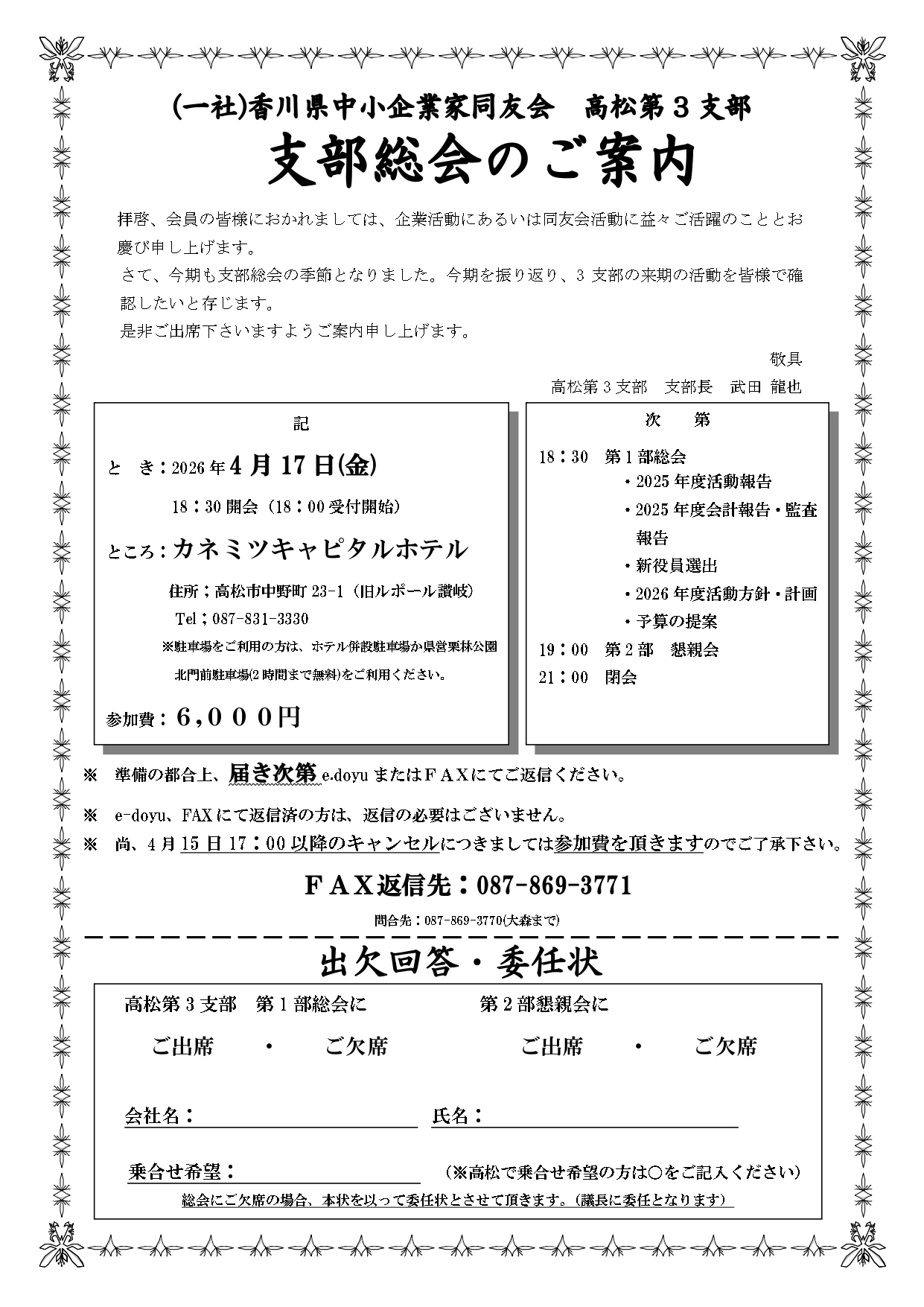 ◆2026年度 高松第3支部総会のご案内◆