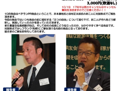 - ◎日時:2019年10月21日(月) 19:00~21:00