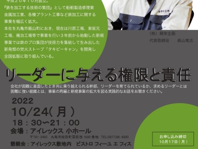 リーダーに与える権限と責任 ~いかに困難を共に乗り越えるか~- ◎日時:2022/10/24 (月) 18:30~