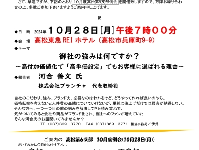 2024/04/26 (金) 19:00~ 4月度高松第6支部例会【支部総会】