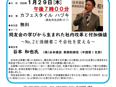 2026/01/29 (木) 19:00~ 同友会の学びから生まれた社内改革と付加価値 ~No2と後継者こそ会社を変える!~