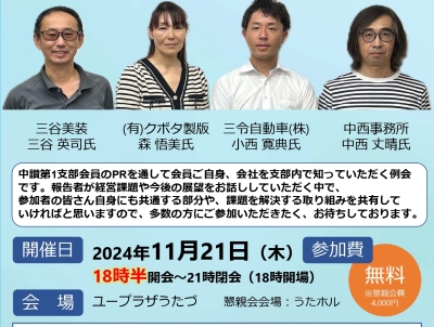 2024/11/21 (木) 18:30~ わたしを・わが社を知ってください ~中讃第1支部会員PR例会~