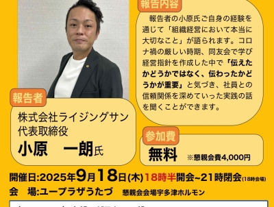 2025/09/19 (金) 19:00~ 『来たれ青年経営者!グループ年商190億超の社長の経営哲学』 ~必要なのは覚悟と情熱~