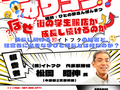 2025/07/17 (木) 18:30~ 成長しない経営者はオワコン―なぜ街の学生服店が成長し続けるのか