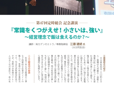 第47回定時総会 記念講演 『常識をくつがえせ!小さいは、強い』~経営理念で飯は食えるのか?~㈲カデンのエトウ/専務取締役 江藤 建続 氏 (大分同友会) 2022.5.28