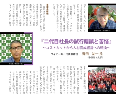 『二代目社長の試行錯誤と苦悩』~コストカットから人材育成経営への転換~/ワイビー(株)代表取締役 野田 祐一氏(中讃第1支部)update.2022年01月13日
