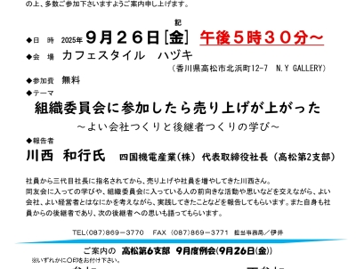 2025/09/26 (金) 17:30~ 組織委員会に参加したら売り上げが上がった~良い会社つくりと後継者つくりの学び~